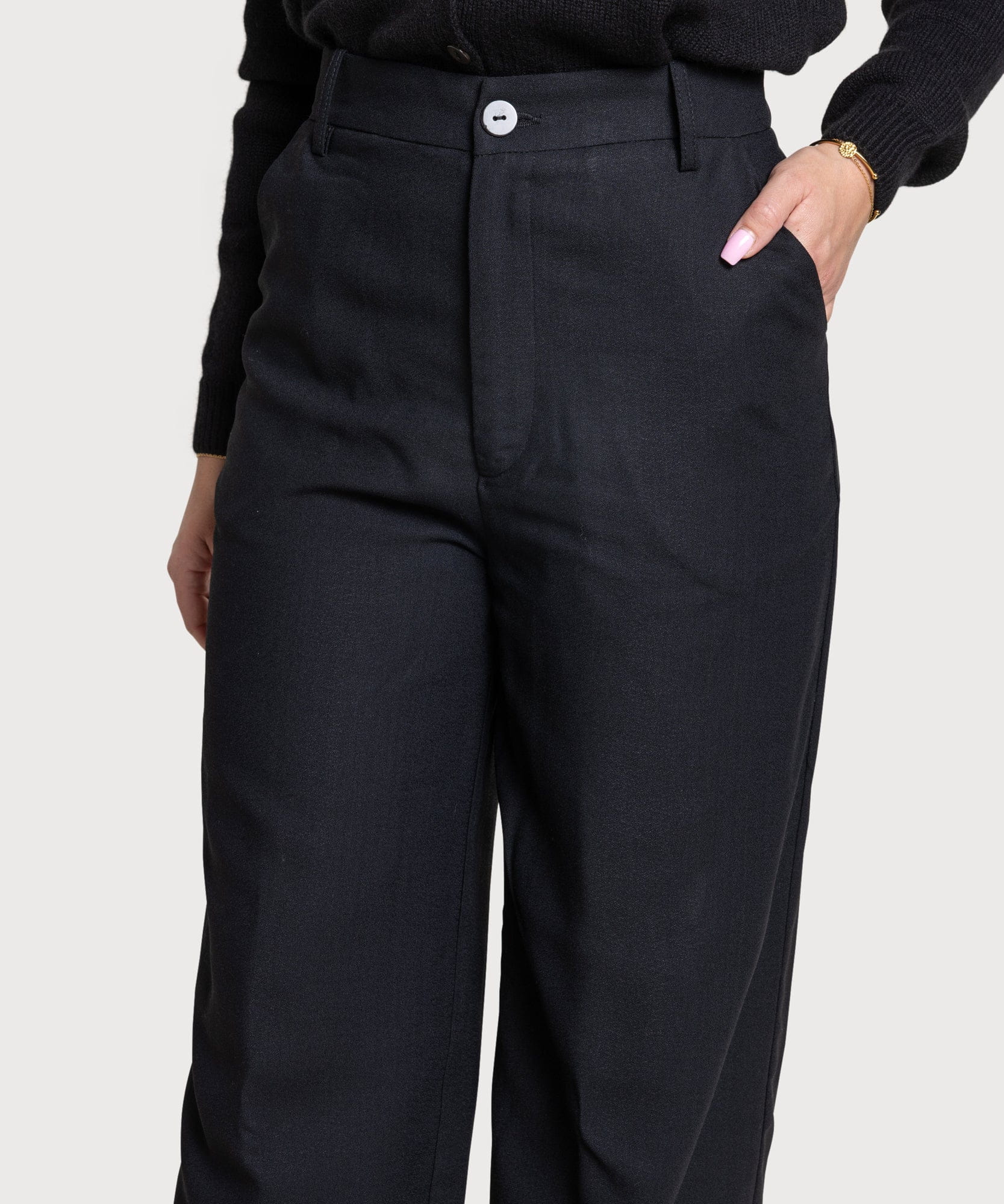 Our Crepe Trousers are a new, elegant addition to your wardrobe. High-waisted and with a straight leg, easy to dress up or down. Match with our Everyday T-shirt and Long Knitted Cardigan for an effortless day look. Comes in Camel, Cream, and Black. Combine with our Double Breast Crepe Blazer in Black for a chic evening look.