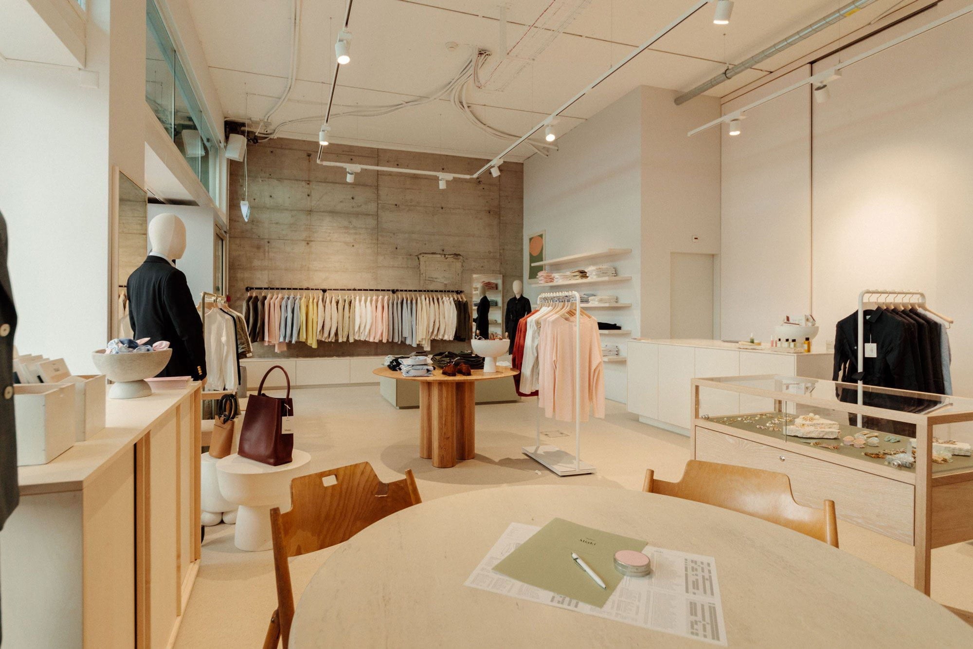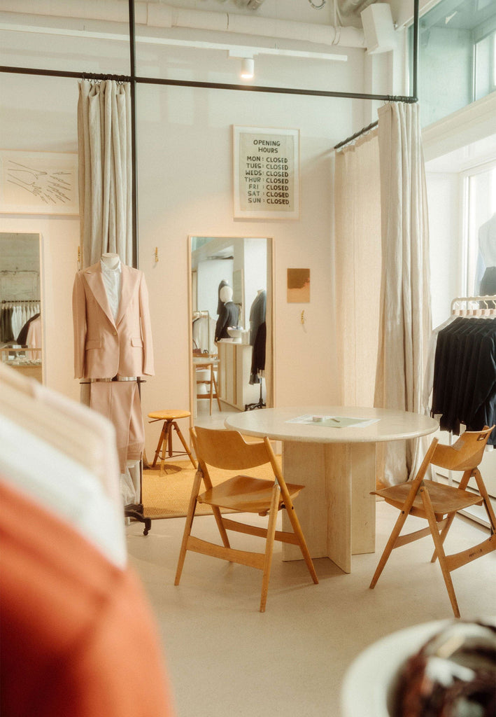 After a decade of flawlessly dressing men, we have gladly taken on the new challenge. Our collection is created at our HQ in Zurich, just a few steps from Paradeplatz, with the objective to create beautiful clothes that are comfortable to wear and will stand the test of time. We spend a fair amount of time obsessing over details and try to do as much in-house and as local as possible, from designing the furniture and interior of our store, to the CI and packaging design. Even the fonts used for our logo as well as the coffee and Yuzu lemonade that is served at our shop have been produced locally.